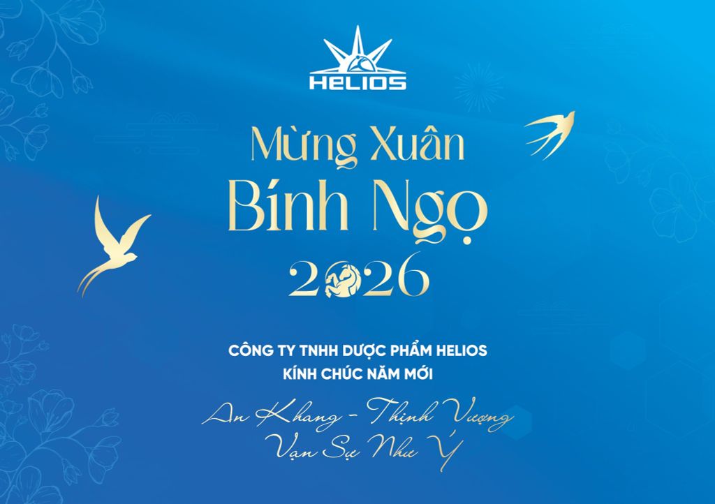 HELIOS PHARMA MỪNG XUÂN BÍNH NGỌ 2026 14/02/26 Helios Pharma - NN Các bài viết liên quan HƯỞNG ỨNG NGÀY SỨC KHỎE THẬN THẾ GIỚI (12/3/2026) CHÚC MỪNG NGÀY QUỐC TẾ PHỤ NỮ (8/3/2026) CHÚC MỪNG KỶ NIỆM 71 NĂM NGÀY THẦY THUỐC VIỆT NAM (27/2/1955 - 27/2/2026) CHÀO MỪNG KỶ NIỆM 96 NĂM NGÀY THÀNH LẬP ĐẢNG CỘNG SẢN VIỆT NAM (3/2/1930 - 3/2/2026) SEASON'S GREETINGS