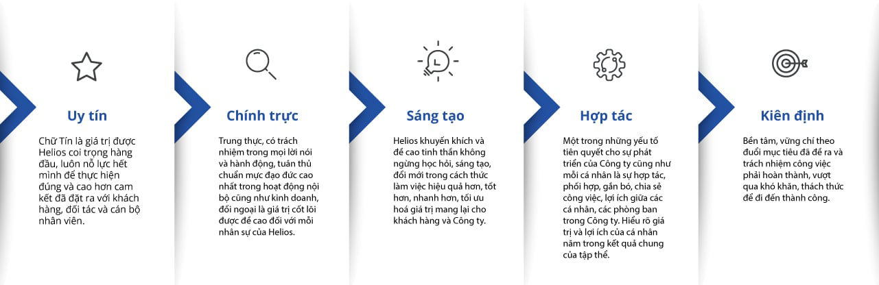 Hành trình phát triển của Helios được xác định rõ ràng, cụ thể hoá bằng Sứ mệnh – Tầm nhìn và Giá trị cốt lõi xuyên suốt, nhất quán.
